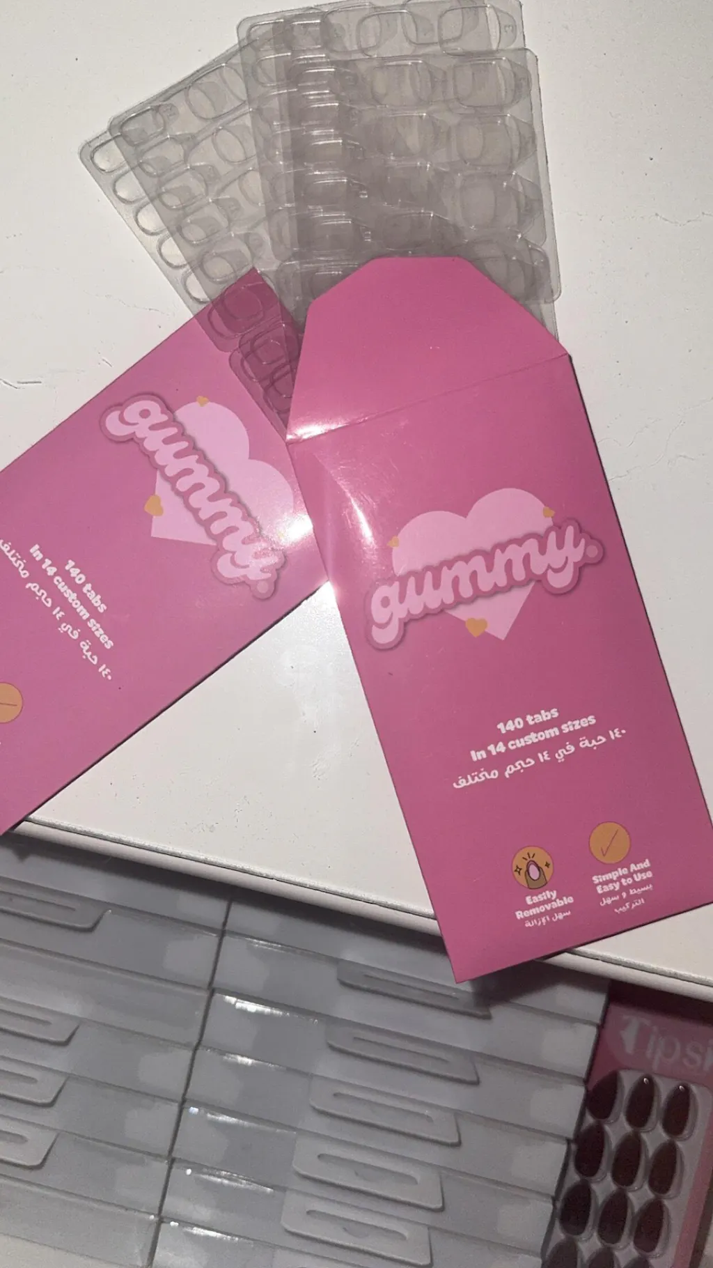 ( داخل علبة الاظافر الصجيه فقط لمره واحدة عشان جذي لازم تاخذين هذا و تستفيدين من الاظافر و تلبسينها اكثر من مناسبه )